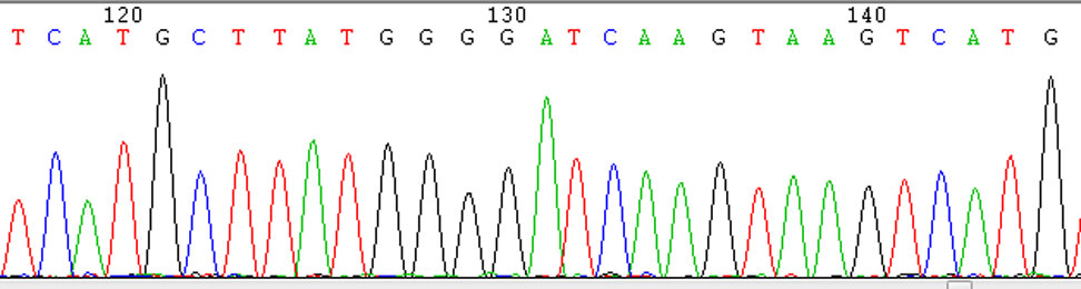 Multi-capillary fluorescence labeling capillary electrophoresis sequencing has been popularized nowadays. Its principle is: four fluorescently labeled ddNTPs are incorporated into dNTPs for PCR amplification; the random incorporation of ddNTP on every site of the PCR products and the lack of OH group cause DNA polymerase to cease the extension of DNA; After amplification, thousands of fragments of different sizes are obtained, undergo capillary electrophoresis and are fluorescently detected to obtain the sequence of the target fragment.