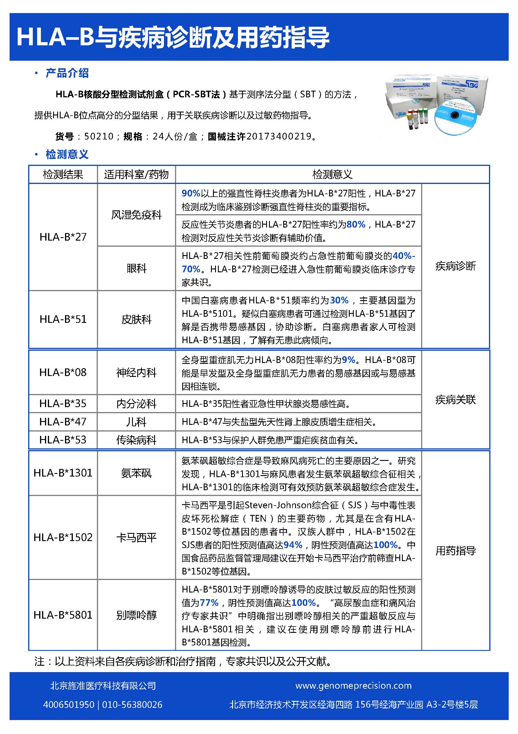 HLA-B核酸分型检测试剂盒(PCR-SBT法)基于测序法分型(SBT)的方法,提供HLA-B位点高分的分型结果,用于关联疾病诊断以及过敏药物指导。